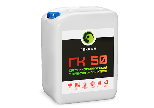 Геккон ГК 50 - Гидрофобизирующая кремнийорганическая эмульсия представляет собой 50% дисперсию полиметилгидросилоксана. Применяется в качестве гидрофобизатора для поверхностной и объемной обработки пористых минеральных поверхностей, а также производства анти-адгезионных смазок.